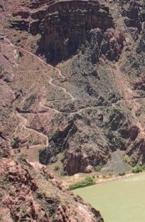 Example of a switchback below. I took this photo in the Grand Canyon in 2005. This is a small portion of the South Kaibab Trail, leading to/from the Colorado River. This is the way I hiked out of the Canyon.
