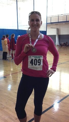 For those wondering about the Cat & Mouse game between Aby and I…..she won as if that is a surprise to anyone. She beat me by 34 seconds! Our times were a bit off because of the hill course length but she ran a 25:52 & I ran 26:26. That gave us 2nd & 3rd overall female placements. The race was very generous with the awards, going 3 deep for overall male & female placements, then 3 deep in age groups. They certainly didn’t skip on awards and seeing as there were only 73 finishers, a lot of people walked away smiling with some bling around their neck.