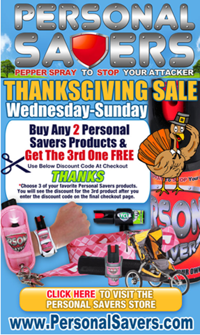 Personal Savers – Pepper Spray – Buy Any 2 Personal Saver products & Get a 3rd Free with Discount Code: THANKS