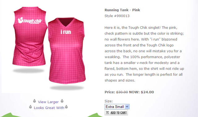 Tough Chik is starting Tough Chik Tuesday. This will begin next Tuesday (11/27/12) and they will announce a “killer deal” that will be available for a short 48 hour period. You can capitalize on Tough Chik Tuesday EVERY week until Christmas. Watch the Tough Chik website and Facebook page for specials on their already amazingly low priced items. I see one of my favorite i run tanks is already on sale for $24!