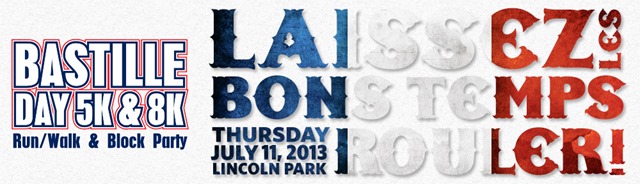 On Thursday evening, my friend Pam and I headed up to Lincoln Park to run the Bastille Day 8K. The race was part of an entire celebration for the French Independence Day. We normally don’t run weeknight events. We never run weeknight events in the city, due to the fact that we live in the far south suburbs. However, we were up for something different and intrigued by the block party. 🙂