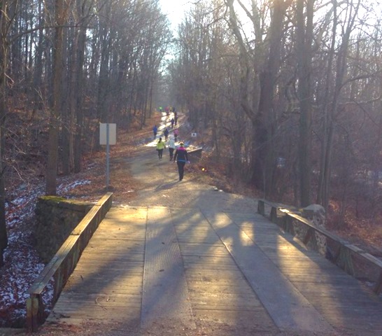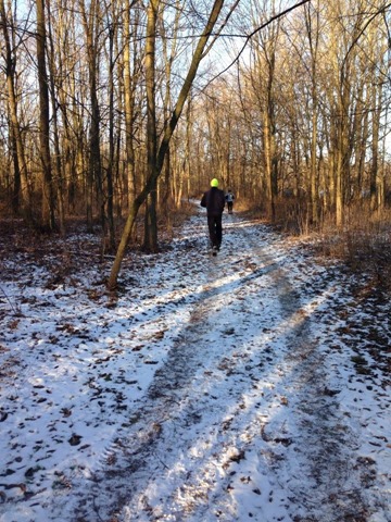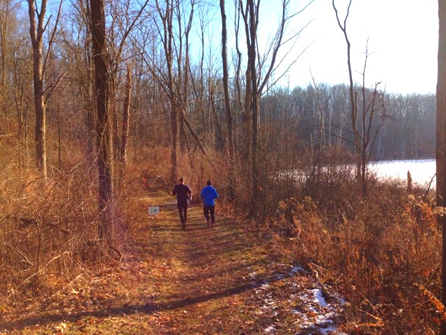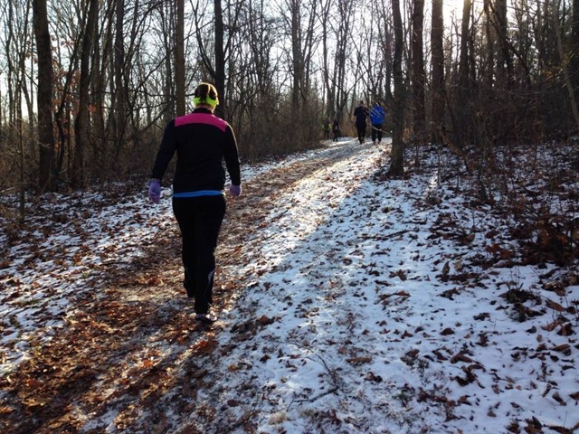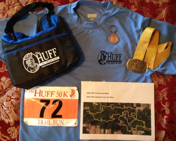 On Saturday, December 28, 2013, I ran my first official trail race, the Huff 50K. The “Huff” also offers two other events, a 50K relay and a one loop (10.8 mile) race. I’ve wanted to do this race for a couple years now because it’s very close to where I grew up and where my family currently lives, plus it lines up well with the fall trail running which I normally do after the Chicago Marathon. However, I was nervous to take on something so big right before I leave for Disney for the Dopey Challenge. I was thinking about it, and thinking some more, leaning toward the one loop option, not wanting to do the relay and having to wait around all day for a relay team but also considering the 50K. I finally decided on the 50K cuz I was healthy and also hoping it would force me to be a bit more serious about my post Chicago Marathon miles and my Dopey training. Yeah, Dopey didn’t worry me but Huff scared me big time. So in order to be properly trained for Dopey, I decided to take the plunge on Huff. I realized this sounds insane but I always downcyle after the CHI Marathon and that’s where my brain wants to go in November and December. Dopey starts on January 9th so I didn’t have much time to downcyle. The Huff 50K was essential to put me back in the mental and physical training game and I used it as one massive, slow training run. I was very cautious and kept it very slow and just celebrated one last last hurrah of a training run before Dopey. Insane. I know. I got it.