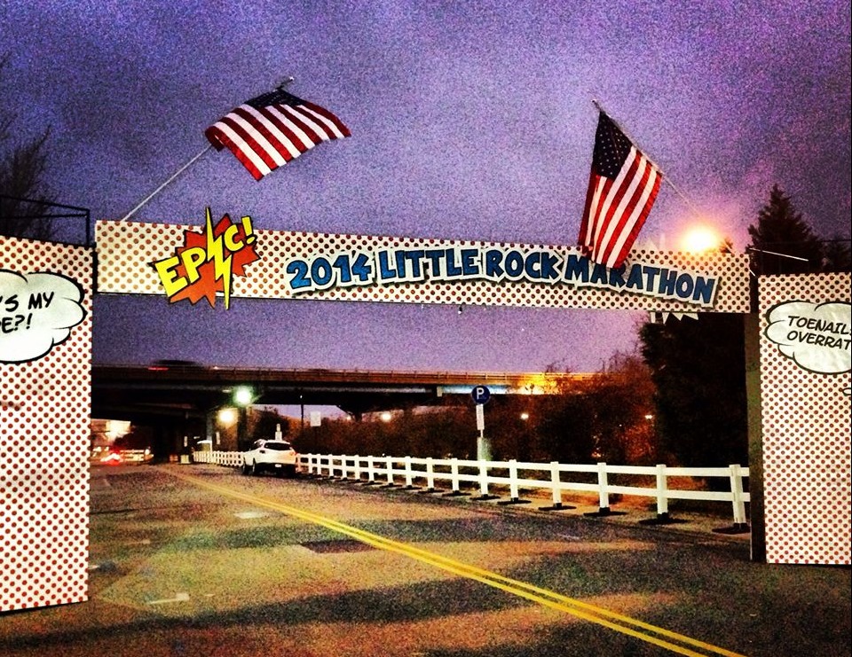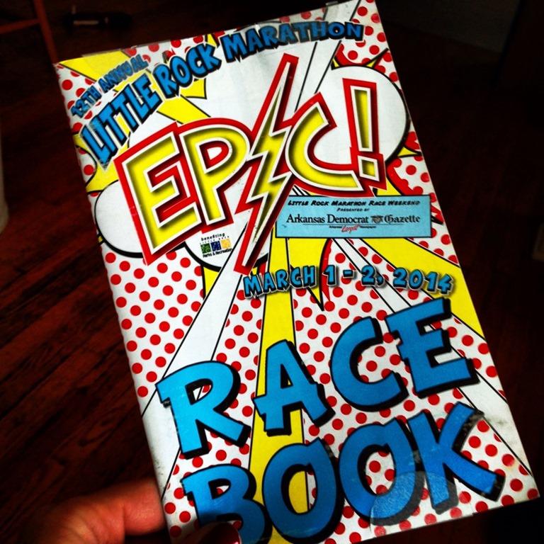 The 2014 theme for the Little Rock Marathon was “epic” with a comic type Super Hero flavor that was pushed hard all the way until and thru race day. I can’t say that I’ve ever encountered a race that delivered a better PR campaign. And I’ve certainly never ran a race that delivered above and beyond what the PR campaign promised, until I ran Little Rock. I was impressed with so many aspects of the race starting the moment I found the race website and how it was designed to fit the theme. I loved the race booklet they sent prior to the event to create hype leading up to the big day.