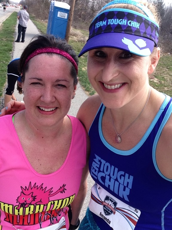 The Carmel Marathon weekend was a Team Tough Chik event and I was excited to go meet some of the ladies who I had previously only known “on line”.  We did dinner.  We talked.  And then we ran.  Perfect meet-up!!  Plus  I’m just loving the Team Tough Chik run singlet this year so it was the  perfect excuse to make it’s debut at the first warm race of the season!!