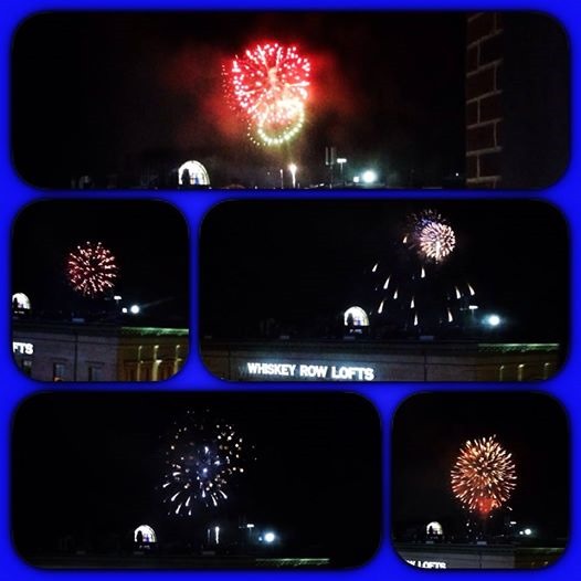 We rolled into town Friday afternoon to get the race packet and hit the expo.  The expo was a decent size with good vendors but certainly not what I’m used to as far as the big city race expos that Chitown offers.  Smile   We zipped thru pretty quickly, then walked around Louisville getting our bearings and finding our way to the race finish area.  I’d like to add that as we were walking toward the finish, a race official in a golf cart saw us and asked if we needed help.  He was kind enough to take a minute to not only tell us where to go but to also tell us which side of the street to walk on come race day.  Super nice!!  Great day and we turned in early to prep for the race! Just before we turned drifted off to sleep, we heard fireworks and looked out the window to see the display going off over the stadium.  Nice!