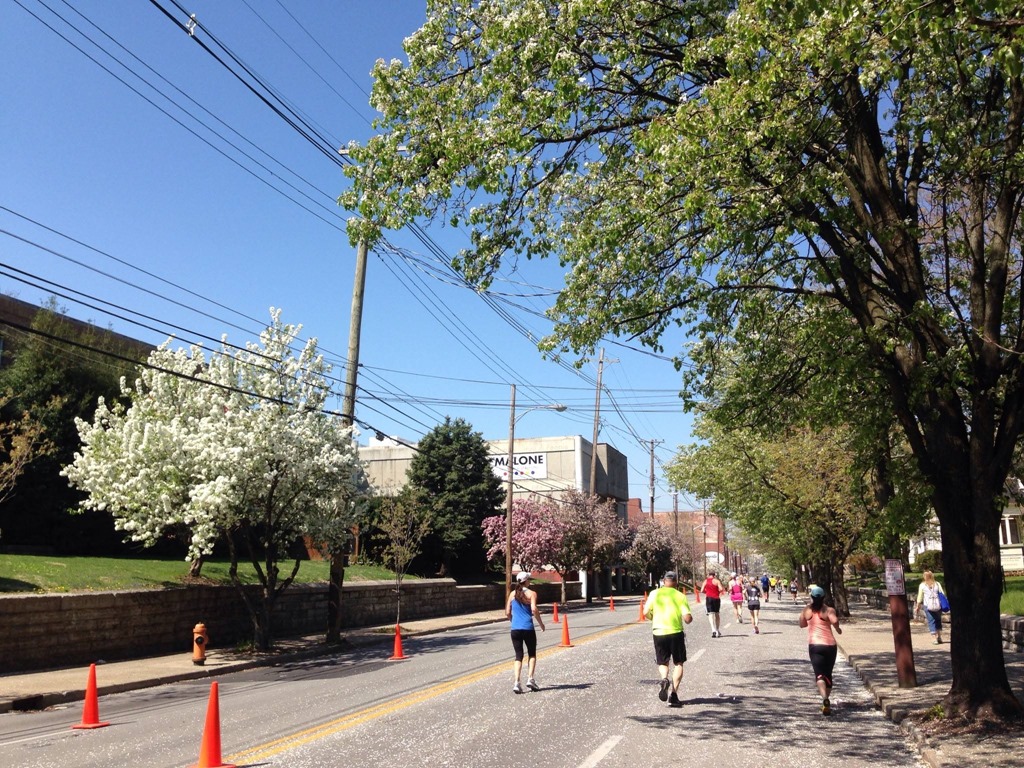 I felt good thru the entire race and I was super thankful for all the work Dr. Alexis did last week to help speed my recovery and to help get rid of a few “niggles” that showed up at the Carmel Marathon the week previous.  I never hurt but my legs did start to get heavy around mile 18.  I didn’t do much walking, just kept moving forward slowily, inching my way to the finish.  About the time, that I really needed to be done, we hit 3rd street and all the beautiful dogwood trees started showering me with little pedals.  Very magical.  I absolutely loved it and was so thankful that I had picked the Derby Festival for #3 this month.  Great day.  Great race.  Great course that rained flowers when I needed a little extra energy!