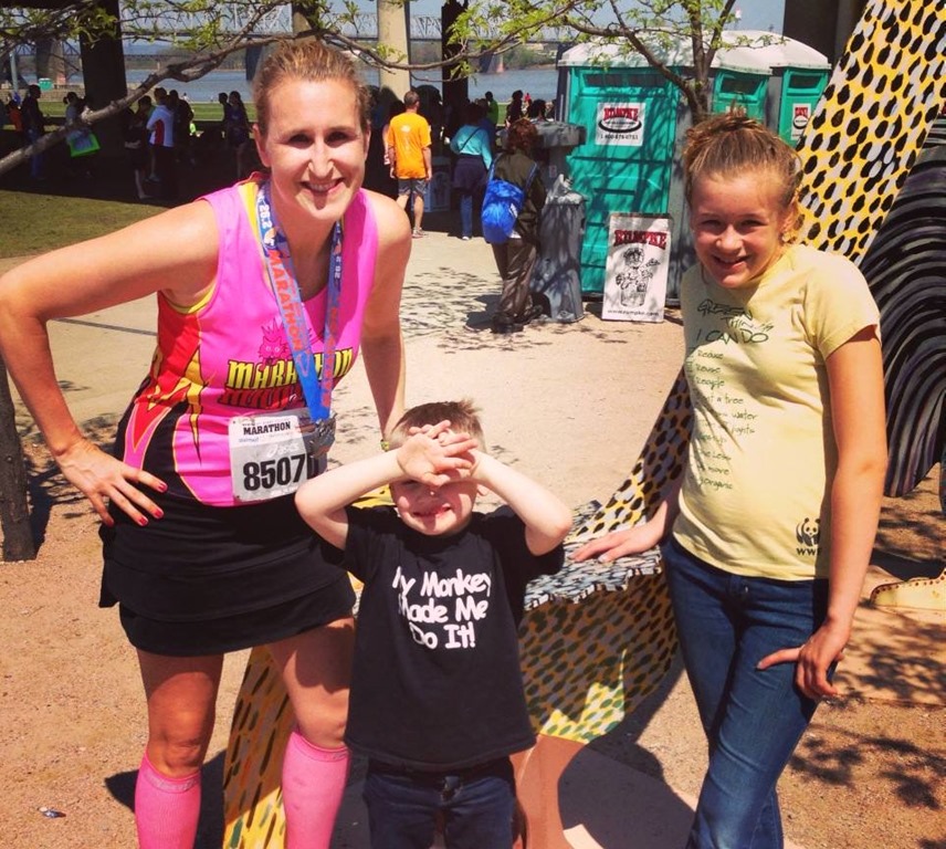 Saturday was the ever popular Kentucky Derby Festival Marathon and “mini-marathon” (AKA – Half Marathon).    I chose this race for the 3rd in my “4 For 40” series because it was a mere 5 hour drive from Chicago and I was somewhat familiar with the area.  I had also heard positive things about this race from other “serial racers”.  Plus, I was hoping spring had sprung and I’d get some much needed sunshine!  I was not disappointed in any aspect.  It was warm, upper 70s, and the area was beautiful.  Louisville was clean, charming and small enough to leave my car parked and walk everywhere safely with my kids in tow.
