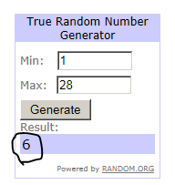 Without further ado, let’s pick a winner!!  The Random Number generator selected #6!!