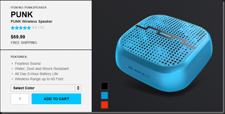 SOL REPUBLIC is known for delivering amazing sound in everything they produce.  I have multiple SOL REPUBLIC items and love each and every one of them.  Definitely my favorite retailer for sound.   However, the Punk Wireless Speaker is a bit different than their other products because this speaker was built to go wherever you go.