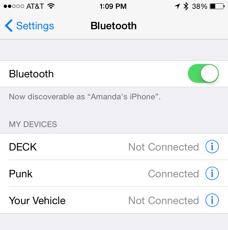 One last thing, that’s important if you are as UN tech savvy as me, is that the Bluetooth hooks up easily.  I don’t mess too much with technology.  In fact, when iPods were “wired” and I had to plug into the computer, it was a train wreck, my iPod was never updated and at this point I don’t even have a computer with an active iTunes account.  Bluetooth was invented for people like me.  It’s easy.  I can quickly/easily pair my iPhone with any SOL REPUBLIC wireless speaker.  I just go into my settings, click on Bluetooth and my phone searches for the speaker (which needs to be on).  The Punk speaker pops up and I select it.  After that initial pairing it hooks up automatically.  So easy!  IMG_5682