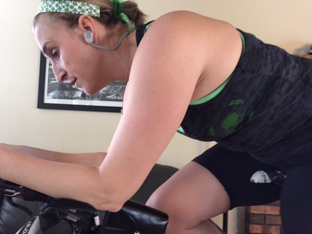 After a quick WOD this morning, I jumped on the trainer to ride.  I normally ride while watching Michael’s favorite children’s programming (Barney the Dinosaur or Paw Patrol) but today I was in my own little world with my Leap Wireless for Women earphones.  Yay!  I’ve never been able to have music while I ride for lack of a place to put my phone to stream the music!  Problem solved!