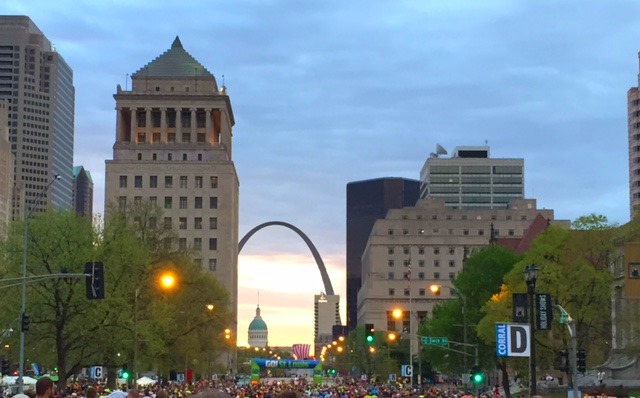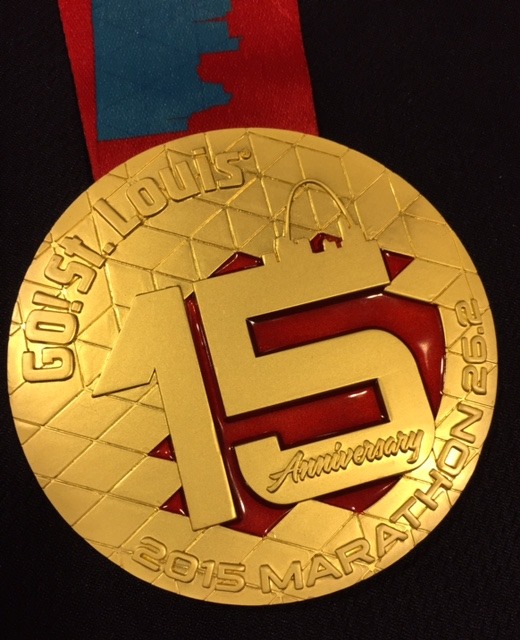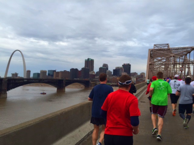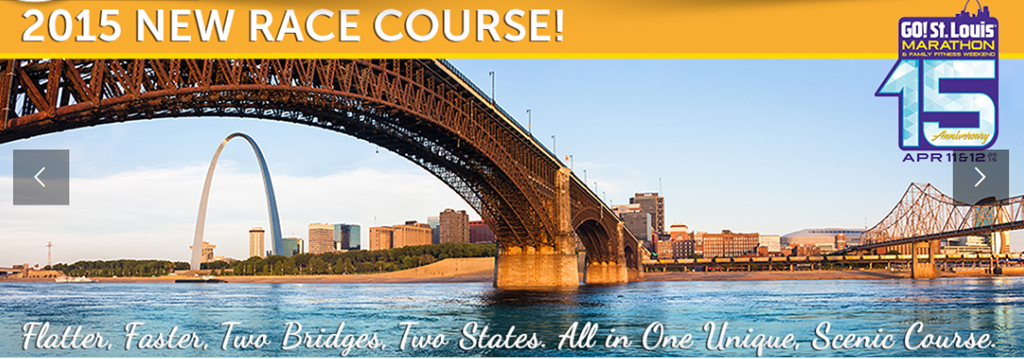 The Go! St. Louis Marathon was my first marathon of 2015.  I had previously skipped the Mississippi Blues & First Light (Mobile, AL) marathons in January, plus a February marathon in Texas, all due to a nasty case of Plantar Fasciitis.  So I was looking forward to St Louis and the new course which guaranteed a “flatter, faster” course.