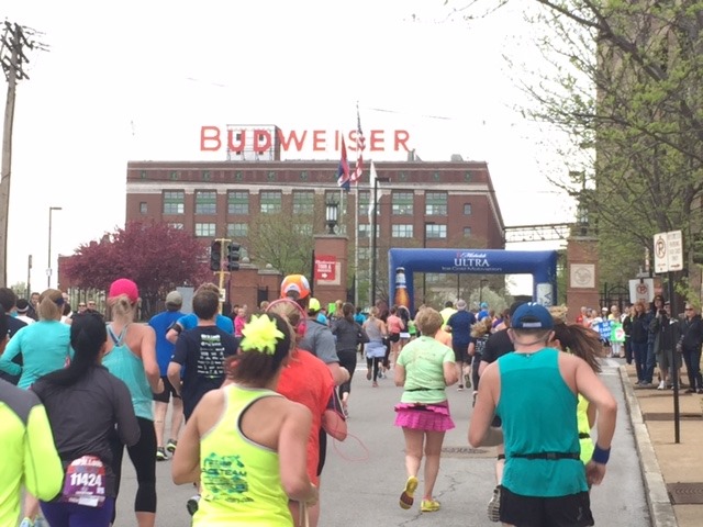 The first half of the race was great and most of the participants called it a day with the half marathon.  Go! St Louis boasted a net downhill for the first half and it was a nice course with lots of historic sites.  I was particularly impressed with the Budweiser campus.  Neat, and clean.  They even had a Clydesdale out for pics!