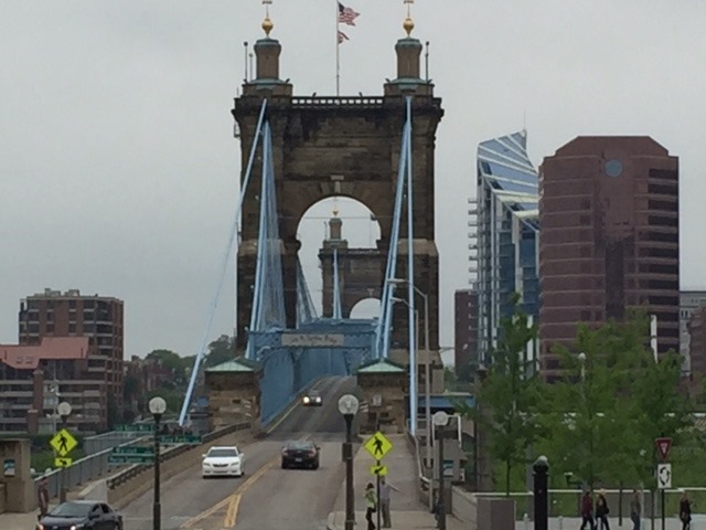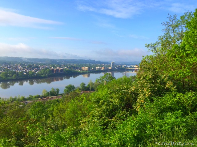 I found bacon immediately within the first couple miles (blurry pic but I was excited!!). Then I found Elvis. We ran in and out of Cincinnati several times. Over 3 different bridges, past a few more.