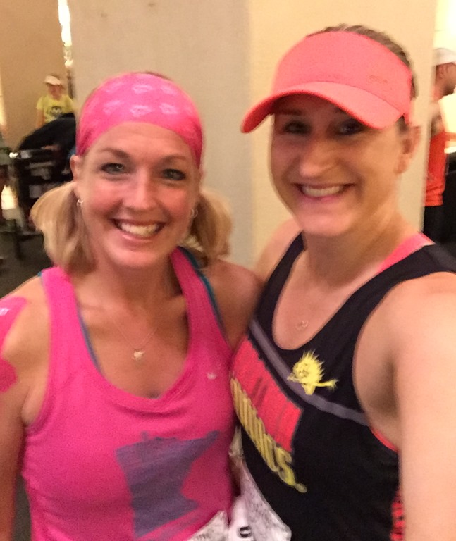 This race was much larger than I anticipated so getting to the start & into the corrals on Sunday morning was a bigger process than I anticipated. We had plenty of time but there were a lot of people (over 39,692 participants for the entire weekend)! I said goodbye to Lindsay as she went into our corral. Pre-race selfie with Lindsay below!