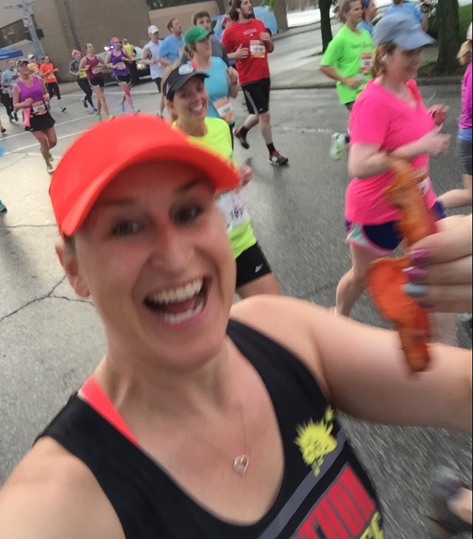 I’ve never ran a race with the level of community support that I saw in Cincinnati. Full on block parties. Lots of drinking in the early a.m. More piggy decorations than I knew to exist. Beer shots. Mimosas. Margaritas. Music. Cheers. Laughter. Painted streets. Encouragement galore. And dogs. If you love dogs as much as Cincinnati loves pigs, then you will be in heaven. Big dogs. Little dogs. Old dogs. Puppies!! Fat dogs. Skinny dogs. Hairy dogs. Friendly dogs. Scared dogs. LOL! I loved the Cincy dogs as much as I loved the people!!