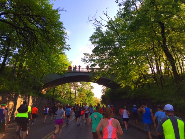 The race stretched out. Hill after hill. Big hills. Little hills. But always hills. Hard race. Don’t let all the fun deter from the hills cuz Cincinnati is know for hills more than fun. There was over a 1000 feet of climbing and just as much descending (ironically not much more climbing than in Olathe KS for the Garmin Marathon that we thought was flat & fast!).