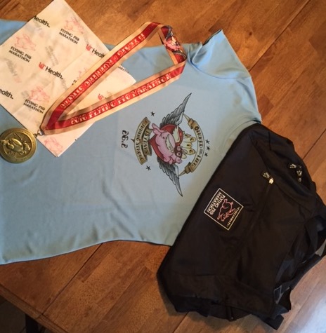 The theme this year was “Get Oinked for Life”. As I understand it, they have a different piggy theme each year. But the swag is always amazing. This year they gave a gender specific tee, poster, gym bag (with yoga mat holder) & a buff at the finish line. I’ve seen finisher hats in years previous but it was a buff this year.