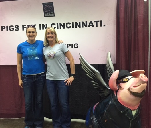 Lots of piggy photo ops too. If you didn’t get your pic with one of the many cool looking piggies, then really, can we even be friends? Get excited, people! Have some fun! WhoooHoooo! Me & Lindsay Glitter Girl on the Run leaving the expo on the right. Pigs FLY in Cincinnati! Yes, they do. And thanks, Lindsay for being excited about all the cool piggies!
