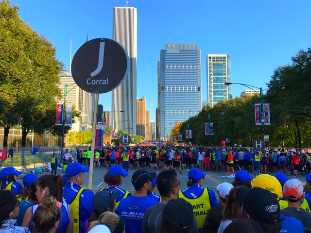 Finally, we were closing in on the start line. I wasn’t nervous but ready to run. I must say as much as I love Chicago, I really appreciate those races where I can stumble out of my hotel and onto the start line 5, minutes pre-race.