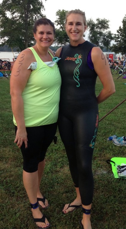 I was even able to catch up with  a couple of friends who were also participating, including Jen who was tackling her first Olympic distance event!  Yay, Jen!!!