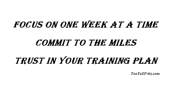 You are certainly not alone when you look around and wonder if you are going to make it thru the training. This is absolutely normal! At this point, you are starting to hit the high miles and it’s not easy. I remember getting back into my car after many a long run wondering how I could possibly get thru the next bump in miles. Yet, I did it, each and every time. It doesn’t get easier when you have more marathons under your belt, you just know to trust the training plan. Trust the training plan YOU picked. Think about it for a minute, you picked a plan for a variety of reasons but basically because you thought it was “somewhat” manageable for your life. You probably downloaded it from the internet, right? How many other people have used that same plan before you? You probably downloaded a plan from a well know website, right? How do you think that person or that website got so popular? Well, it wasn’t because the people who ran the plan before you didn’t make it thru the training, couldn’t manage the next bump in mileage, didn’t finish their race. They did finish and so will you!