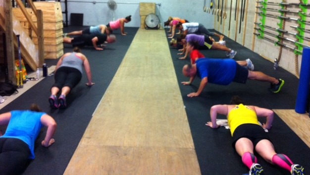 Our group of 5am F’N CrossFitters rockin’ out the push-ups!  Love these guys & gals!!!