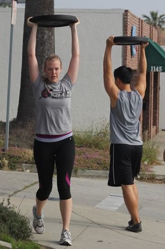 Second 6 minute set:  10 Box Jumps, 10 Sit-Ups, 1 Plate Carry (carry a 25 lb plate 100 meters) – This set was so much easier for me and I actually enjoyed it.  The plate carry was my favorite.  It was hysterical to see the various ways that people carried their plates.  These are a few pics from google images but it was the same for us.  Some held the plate high over their heads, some under their arm and I carried mine out in front like a load of boxes.