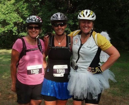I have so many thanks to give:  1)  My F’N Runners, Jenny G, Lisa M, & Lynn S who waited on me to finish, even though they rode the 25 mile ride and were probably finished way before I even had problems.  I knew I could count on them to pick me up if I necessary and really appreciated them hanging around when I know they just wanted to go home.  Lynn, Lisa & Jenny (photo source – Jenny G) below: