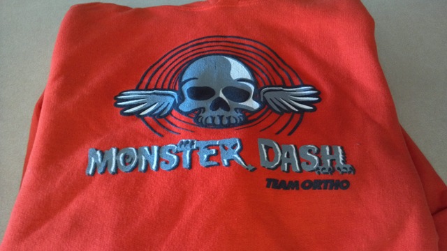 If time and scheduling permits, I would run the Monster Dash again in the future.   The venue was great for this event.  If everyone lined up properly by pace at the start, I think it would take off much smoother and the course wouldn’t initially seem so narrow and crowded because it did thin out once you ran away from the idiots. I also have hopes they will get a little bit more serious about the 5K portion of the event and decide to throw us a chip in the future.  I need to run this distance when the family is in tow and although I always “run for fun”, it is a serious distance to me and I’d like to knowhow fast Aby ran it to get a little respect.  I also hope they work things out a little better in the SWAG department and get people the proper sizes.  I know Team Ortho is taking on a lot right now and growing fast so I’ll give them some slack but they’ve gotta get it together if they want the want to continue to grow and be successful in the CHI.   Good start but needs work.
