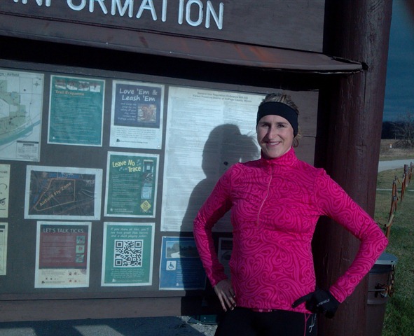 Please note that despite the fact that these lovely people could have been shopping Black Friday sales, it would have been perfectly understandable if they had just wanted to stay in bed.  The temp was barely 30 degrees and the wind was CRAZY.  It was very cold.  We didn’t do much lollygagging but just made short introductions, took the photo and ran!  We had people in this group from as far south as Monee/Peotone, as far north as Addison, as far west as Manhattan & as far east as Lansing, IN!  Very diverse group of people from all over.  I was super proud that they all came out and I know these specialty Friday runs will continue to grow!  Next Waterfall Glen Run – Good Friday (2013).
