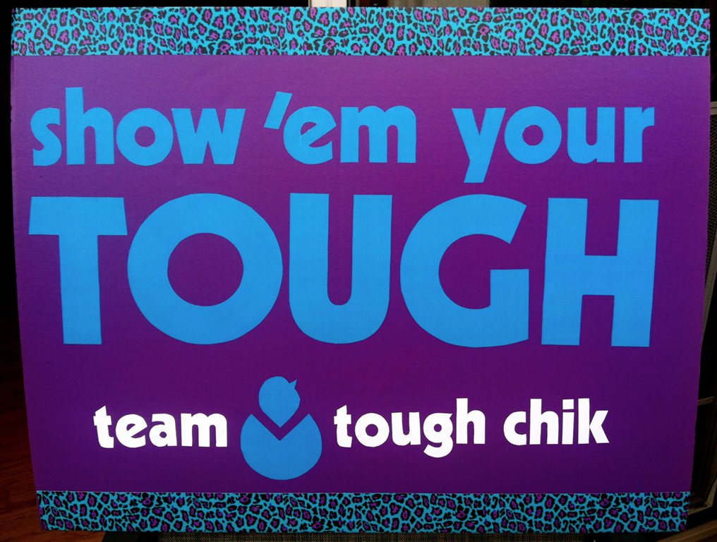 If you are headed to Peoria to Run River City, look for our Team Tough Chik relay.  Or the amazing sign that Jess made which I’m sure will pop up around the marathon course.