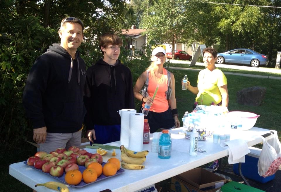 We were fortunate enough to have a two generous sponsors to support us during the run.  Huge shout out of thanks to Berkots Super Foods and Running For Kicks for supplying apples, bananas, oranges, water, Gatorade, and GU gel!!  We also had a crew of AHHHHMAZING volunteers to cycle the route with us and staff 3 aid stations along our 10.25 mile out and back route.