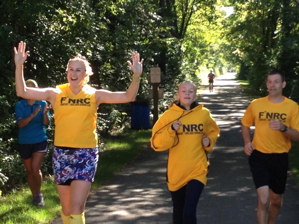 So yesterday, I came straight home from my run and held Michael pretty much the entire day, while hubby proceeded to come down with the creeping crude as well.  Awesome.  So at 4am this morn, I was laying awake holding my feverish baby seriously considering bagging my first race ever.  I didn’t want to go, everyone was sick.  I felt guilty about leaving but was giving one person a ride to the race and meeting many more on site.  Would it have mattered if I didn’t go?  Not really but I felt a bit of obligation.  I went. We had a large group of FNRC Runners.