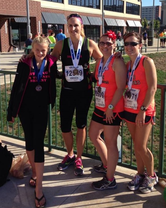 Saw a few friends at the end too! Aby, Me, Adella & Brandi. Both Adella & Brandi were on my track & XC teams in high school. LOVE that we are all still running!