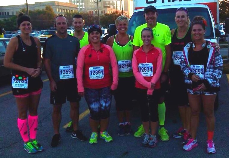 This is by far one of my favorite events of the entire year. The atmosphere is festive, fun and family friendly. Each and every year, I am amazed at the growth of the field size and how well the organizers are able to manage the increase in numbers. The Fort4Fitness weekend brings a health & fitness expo, kids marathon, senior marathon, 4 mile run/walk, 10K and half marathon. This variety of events allows my entire family to participate as well as many, many of my local run friends who are out for fun, fitness or possibly even running for time. A few friends from high school, who I saw at the start: