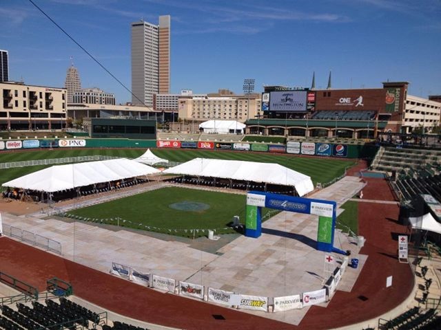The 4 mile event hosted 3603 finishers with an average time of 1:00:02, the 10K had 1834 finishers with an average time of 1:14:41 and the half bought 2515 finishers with an average time of 2:14:54. Each and every participant finished in grand style, on the jumbotron as they made a lap around the track at Parkview Field.