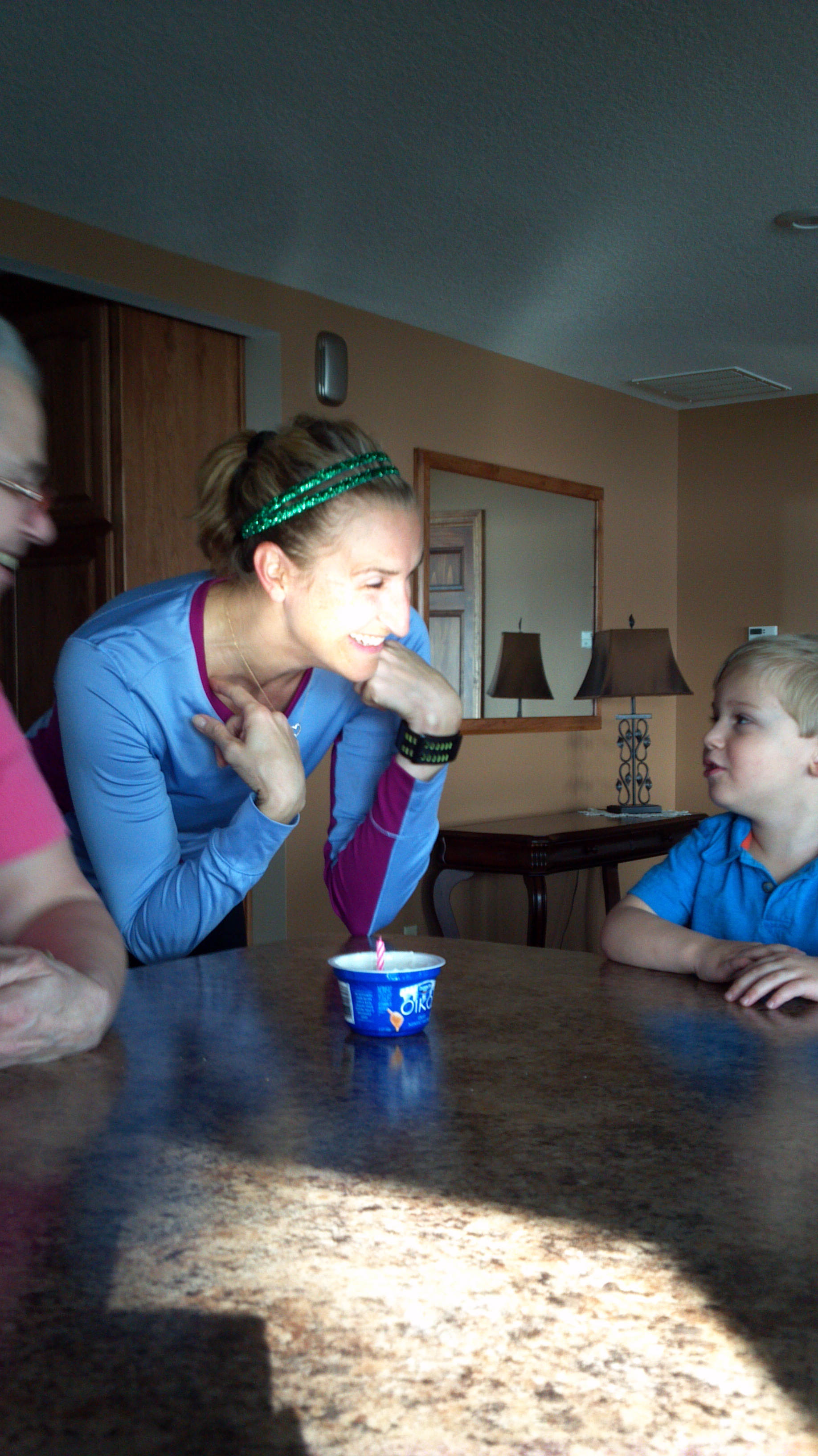 Ran in the headband all weekend too, here is a photo after my Sunday “Birthday” Run.  Michael is singing Happy Birthday to me: