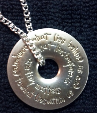 I came across several inspirational jewelry pieces through a fundraiser for Aby’s school.  I made several purchases, a believe necklace with a tiny cross that Aby has been wearing non-stop and a few necklaces etched with the following phrase: