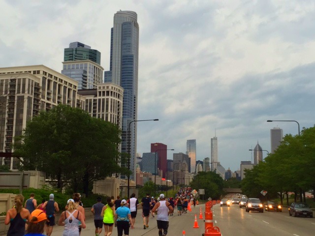 The course winds thru the streets of Chicago. I’ve ran the race several times at this point so I know the course. The spectators were concentrated at key intersections but it was otherwise a pretty quiet day. Like a training run with lots of friends!
