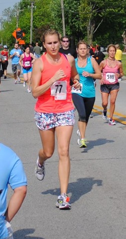 I was looking forward to the first aid station on this run. Last year they had a water hose & were spraying people down. I saved my “thank a volunteer” bracelet for whoever was on the other end of that water hose. It was heating up. Probably close to 80 by the time I got to the run. The temps were cooler than normal for Muncie but still hot for me. I knew the run course had some rolling hills. Nothing too bad, only 161 ft of elevation gain, but one of the issues with my back is that nerve damage prevents me from raising my feet off the ground too far when I’m running, so hills are a challenge. Even little ones. My plan was to just keep moving, regardless of the pace. Just keep moving.