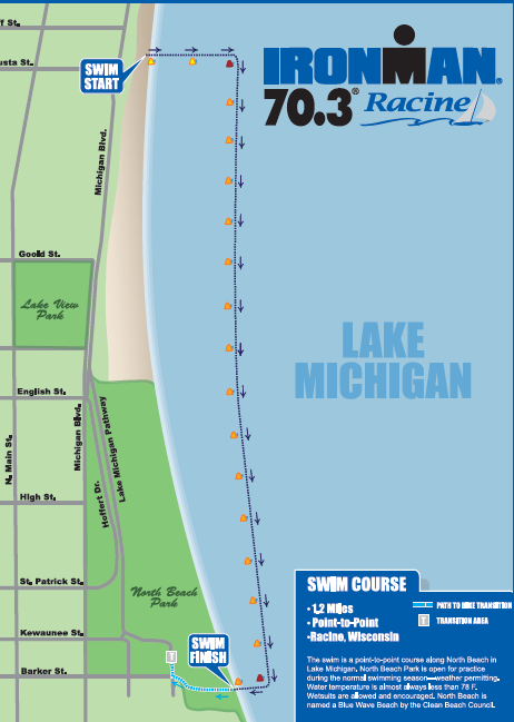 Swim course was set up like an inverted triangle with 2 long sides and a short “leg” in between.