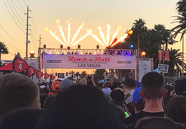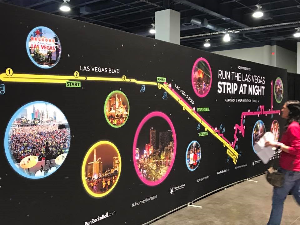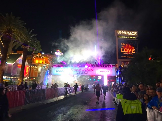 This weekend I was at the Rock N Roll Marathon Series Las Vegas event.  Otherwise known as “ The Strip At Night”.   This was my first time at Rock N Roll Las Vegas and I was pleasantly surprised.   I haven’t been to Vegas for a long time but its relatively easy to navigate by using the monorail, cabs/uber or walking.   The expo is just steps from the monorail at the Las Vegas Convention Center and was open from Thursday thru Saturday.  This is one of the largest RnR events with over 40,000 registered runners!  They offered several races throughout the weekend:  5K (8249 finishers), 10K (5498 finishers), Half (22,052 finishers) & Full marathon (2655 finishers). PLUS there were 230+ people who participated in the Run Thru Wedding during the half & full marathon.