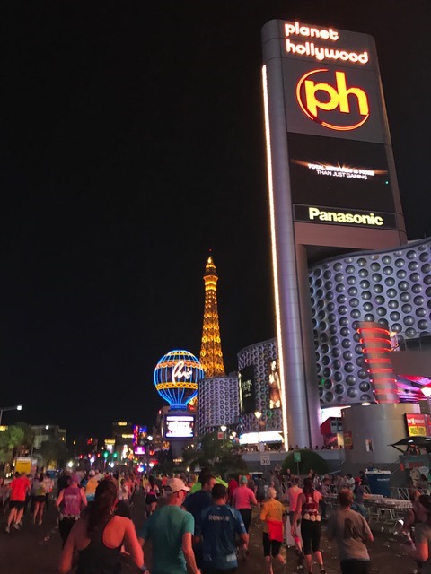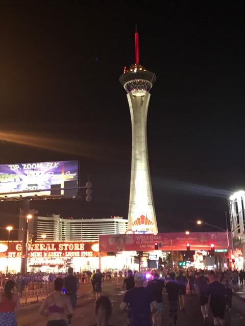 There was definitely an excitement in the air.  I think this race was about so much more than running to many of the participants.  I heard a lot of chatter about this being the first time at a particular distance.  So many spectators.  So much energy.  It was dark.  It was cool without the sun beating down on us.  It was beautiful.  The night was lit up with all the beautiful lights of Vegas.  It was an experience like no other.  This was my 36th marathon and I must say, it will stand out in my memory for a long time to come.