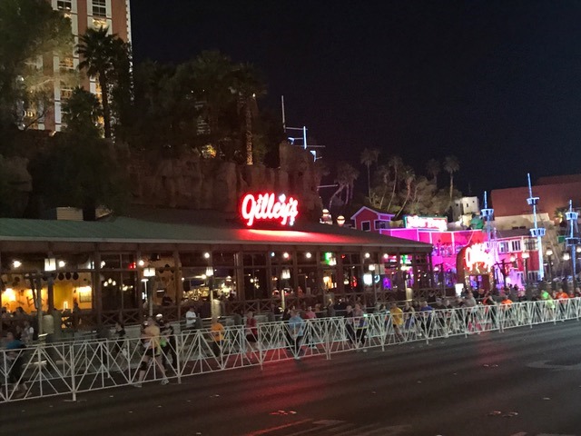 After passing the Vegas sign we were headed toward the more well known parts of the strip with lots of casinos and flashing neon lights.  This is only about 1.5 miles into the race & you can see that I already have plenty of road to run.  I didn’t feel hindered by the crowds and could run the pace I wanted.