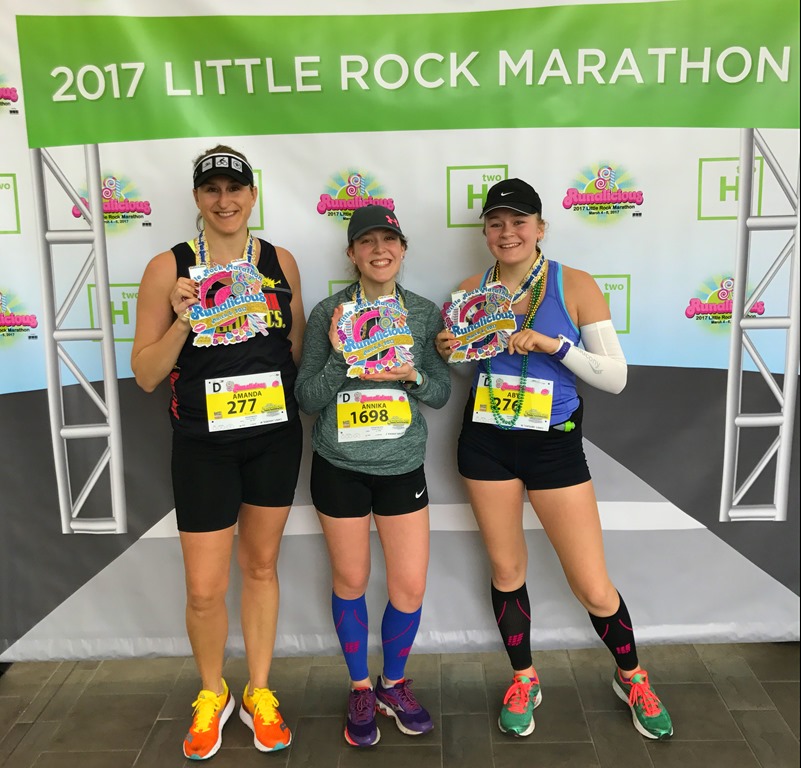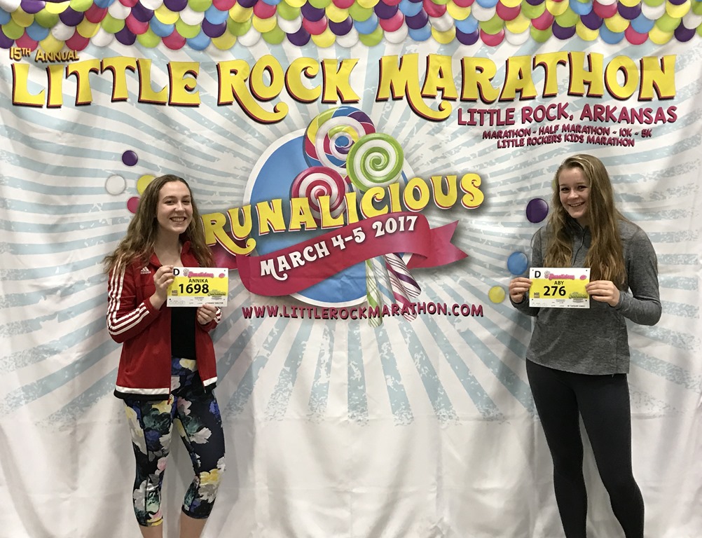 An abbreviated training plan & a somewhat mild winter delivered us to Little Rock mostly healthy & ready to run.  The girls were slightly nervous but mostly calm.  I heard them say many times “we trained for this, we can do it”.  But they were notably tired from the travel so we tried to keep things pretty low key & not do much.  The Expo was a great size for a small town race.  There were 2181 marathon & 3699 half marathon finishers on Sunday, plus a 5K & 10K on Saturday.  Lots to do Marathon weekend .  Something for everyone.