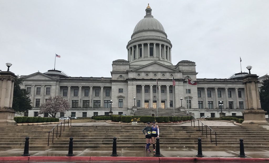 Awesome race.  Lots of crowd support.  Volunteers, police & everyone seemed happy that we were there.  Sometimes when a marathon rolls into a town, the residents aren’t happy because it’s a huge inconvenience for them.  I genuinely feel welcome each time I go to Little Rock. If you are looking for a smaller race that feels like home, this is a great one.  Elevation is much greater on the 2nd half, so save something for the bigger hills.  There were 3 hills that were bad enough that we walked part of them but otherwise, we ran the entire race other than potty stops (2) and the photos we took.  It was a great day in Little Rock & I’d be happy to go back.