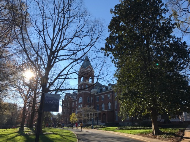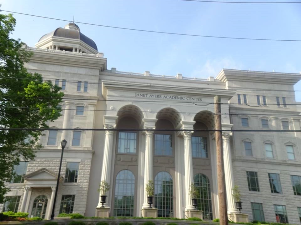 But even with the hills, the entire race was just fun.  Great atmosphere.  Lots of crowd support.  Plenty of aid stations with both fluids & food.  Candy.  Pretzels. Oranges.  Happy volunteers. Plus we ran thru 3 colleges which is always great.  Anges Scott College for Women (first photo below), Emory University (second photo below) & Georgia Tech.