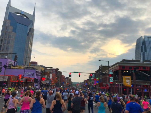 This was a great race.  One of my favorites thus far. The first half was shaded, which is a total win in my book!  There were hills but it seemed manageable even though this race took over the #1 spot for the most elevation gain (1,544 ft) of any road marathon that we’ve done to date.  We had steep accents & descents but a lot of flat ground in between.  Better for me than the continuous up and down rollers!  In case you’re keeping track of my road race elevation gain list, #2 is now Mississippi Blues Marathon (1,319), #3 is the Georgia Marathon (1,265), #4 the Rock N Roll Nashville Marathon (1,121), and that bumps Cincinnati’s Flying Pig Marathon (1,020) to #5.