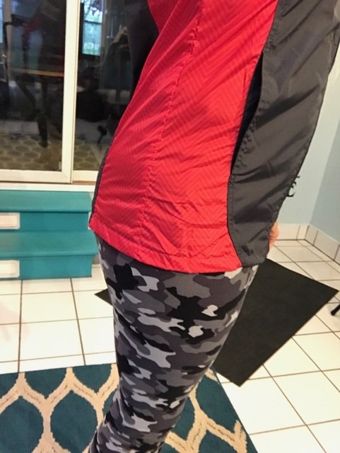 The finish line finally came into sight & we not only received a medal but a cool, thin jacket!  We got to pick our color & size.  I think they had red, black & aqua jackets.  Nice perk!  Race shirt was a pale green, unisex, long sleeve tech tee, which I like.  It doesn’t fit me great but I do like the color and style!